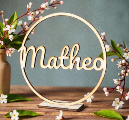 naamcirkel met diameter 20 cm met voetje. Verkrijgbaar in verschillende uitvoeringen