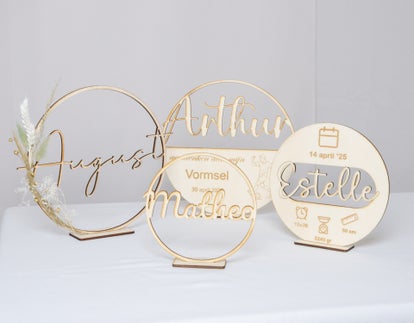 naamcirkel met diameter 25 cm op voetje. verkrijgbaar in verschillende uitvoeringen.
